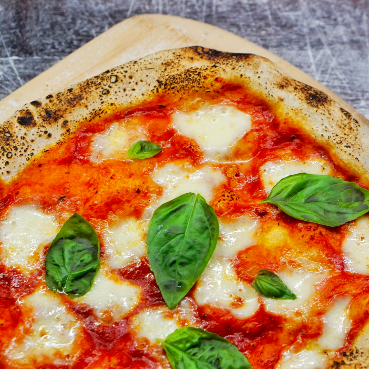 Unsere Pizza wird bei hoher Temperatur gebacken und mit Sorgfalt belegt. Der Teig entsteht mit Lievito Madre – aromatisch, luftig und gut bekömmlich.